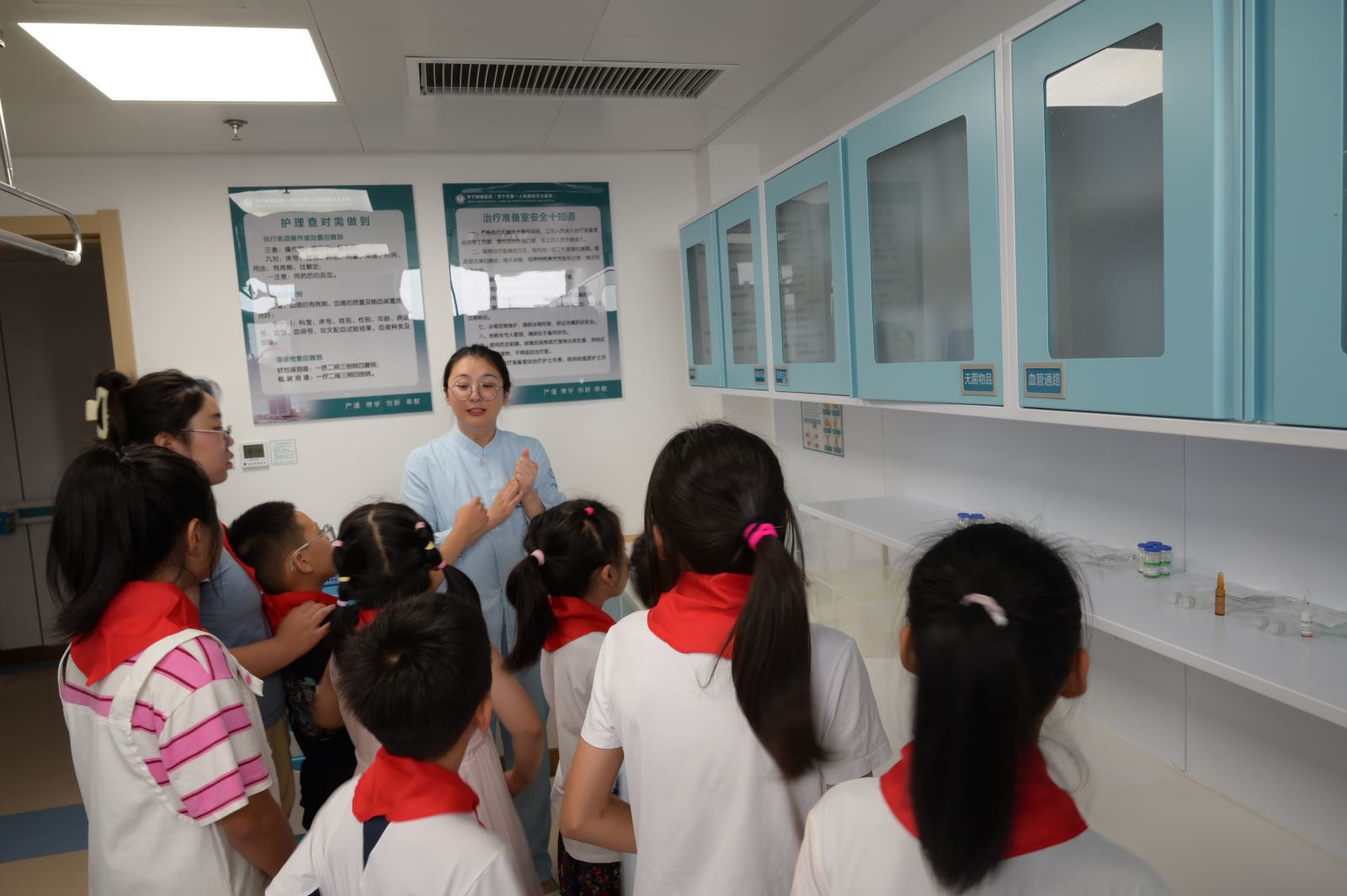 在“病房小天使”环节,孩子们首先参观了治疗室,认真聆听护士讲解输液泵、心电监护仪等医疗设备的使用。随后,他们走进病房,与患者暖心交流,一声声充满童真的“祝您早日康复!”,令患者感动不已。孩子们不仅学会了关怀与共情,也更加理解了医护工作的专业与温度。